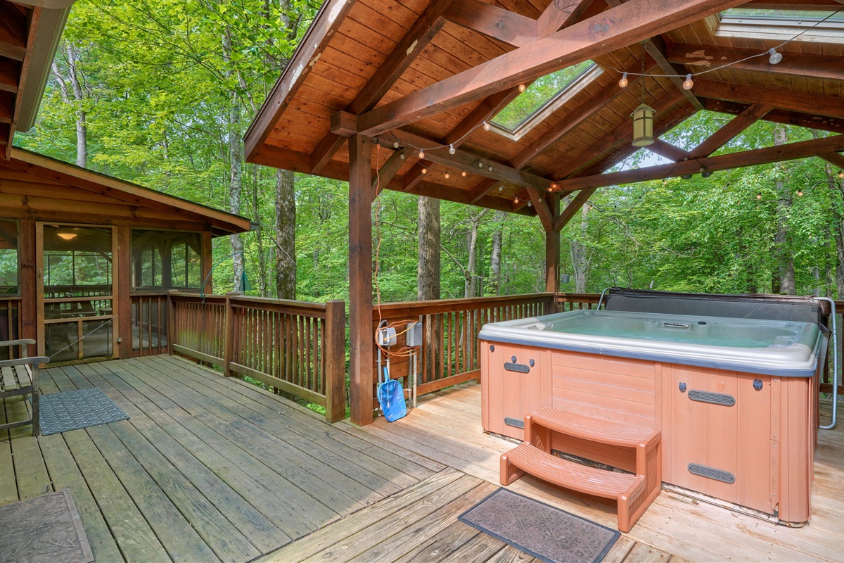 3 Bedrooms • 2 Bathrooms 2 Baths • Sleeps 1-8This stunning log cabin nestles close to Old Man's Cave in Hocking Hills, Ohio, boasting 6 acres of serene wooded land bordering the State Forest. Relax and connect with nature in the secluded outdoor hot tub featuring a gazebo and skylights, offering a breathtaking view of the ravine. Ideal for families and friends seeking a tranquil retreat, Lane's End welcomes up to 2 pets, ensuring everyone can enjoy this beautiful escape.